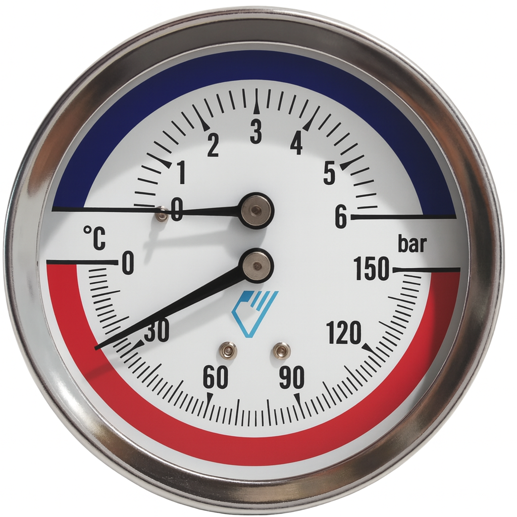 Thermo/manometer D80 Ø1/2”/0–6 bar 0…+150°C, bottom connection