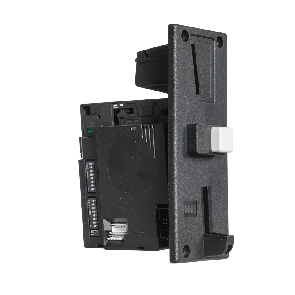 The industry standard 3,5″ electronic coin selector: The EMP 800 coin selectors will guarantee an optimal coin handling solution for indoor or outdoor operated machines. Specifying or omitting certain options allows customers to obtain coin selectors entirely suited to their particular application.